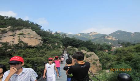 爬嶗山,一路九轉(zhuǎn)十八彎,驚險刺激。無盡風(fēng)景在險峰,連綿不斷的山峰和高入云端的山頭 。